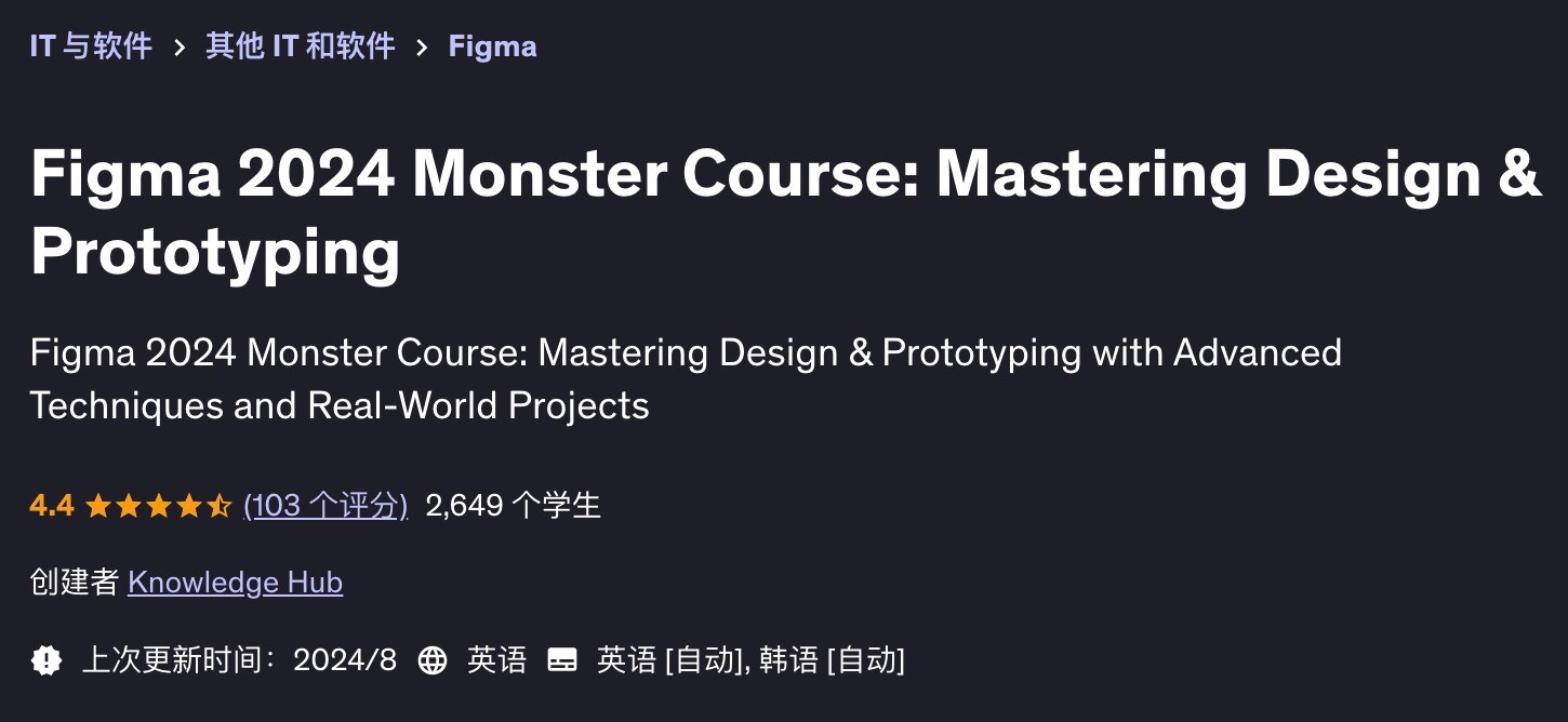 通过《Figma 2024 全能课程:高级技术与实战项目掌握设计与原型》的学习,全面释放您的设计潜力!本课程为期 7 小时,专为初学者和中级设计师打造,帮助您提升设计水平。