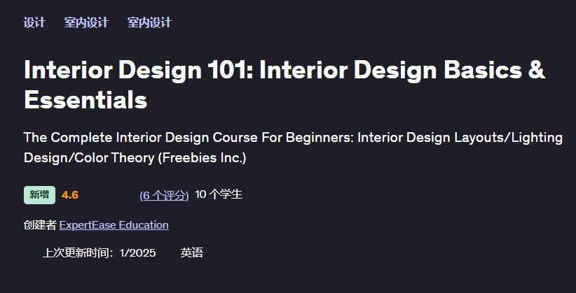 本课程是为室内设计初学者量身定制的,它将帮助你理解室内设计的基本原理和技巧。无论你是想进入室内设计行业,还是希望改善自己家中的空间布局,都会在本课程中获得有用的知识和实用的技巧。