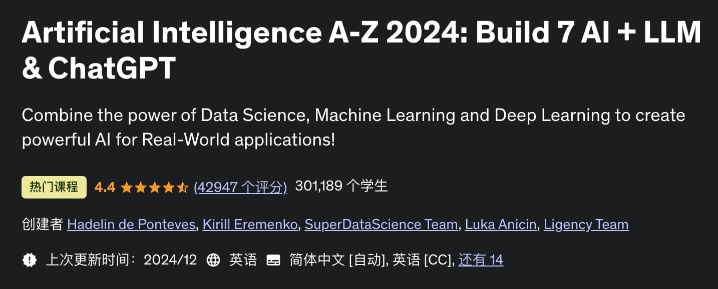 – 开发者与数据科学家:已经有一定编程和数据科学基础的开发者,可以通过这门课程提升 AI 技能,学习如何将人工智能应用于实际项目中。