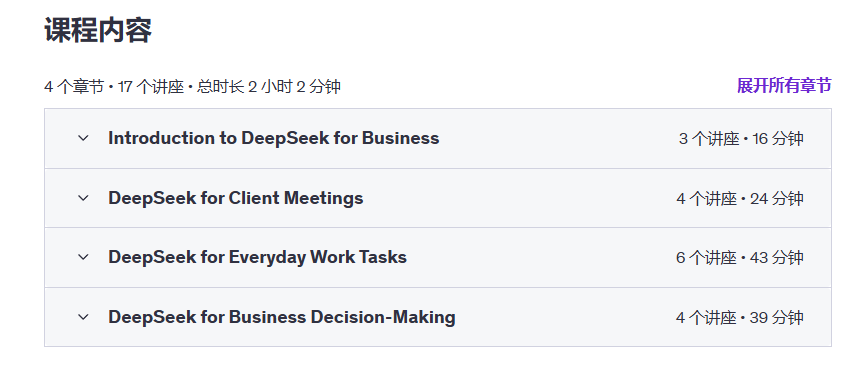 全面理解DeepSeek的功能:​学员将学习如何在商业环境中有效利用DeepSeek的各种功能,优化业务流程。​