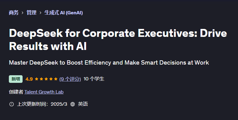 提升竞争力:​课程将指导学员如何利用DeepSeek的AI能力,为企业创造新的商业机会,提升市场竞争力。​