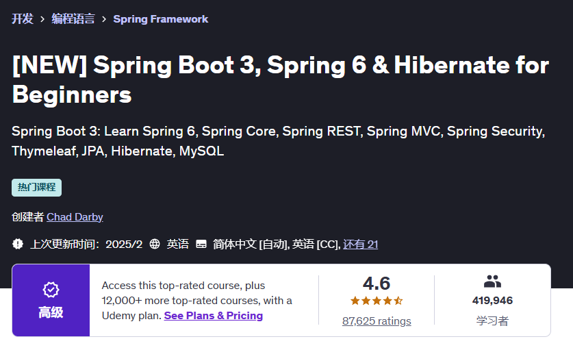 这门课程是 Spring与Hibernate教程,适合想要深入了解Spring框架以及Hibernate的开发者。课程内容全面,涵盖了Spring和Hibernate的基本概念及其结合使用的方法。通过这门课程,你将学到如何使用Spring来管理应用的不同组件,如何使用Hibernate进行数据持久化操作,以及如何将Spring与Hibernate结合起来开发强大且高效的企业级应用程序。