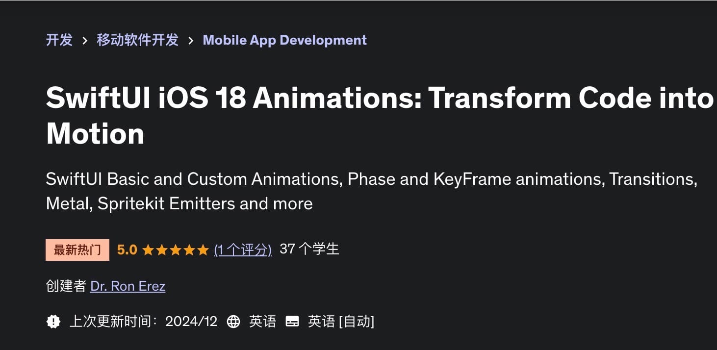 – 最新更新:紧跟SwiftUI最新更新,掌握最实用的动画方法。