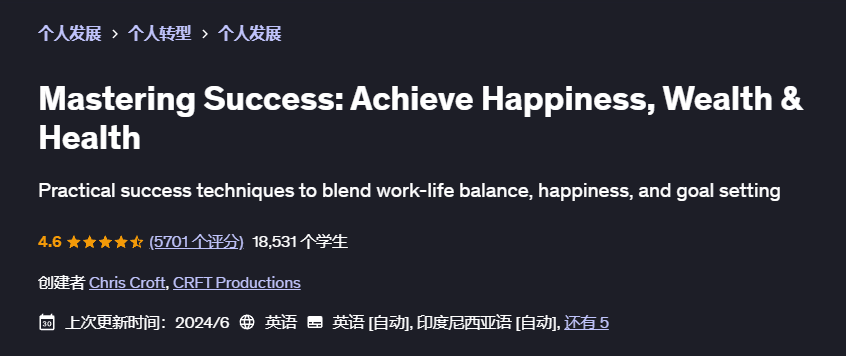 课程名:Mastering Success: Achieve Happiness, Wealth & Health