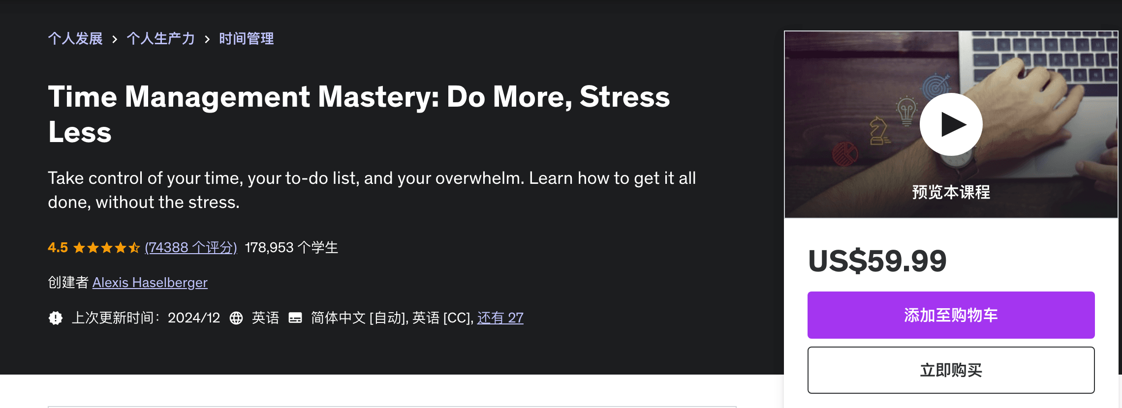 课程不仅教授如何提升生产力,还深入探讨了如何管理和缓解压力,帮助您在繁忙的生活中找到平衡,让自己既能高效完成任务,又能保持良好的心态。